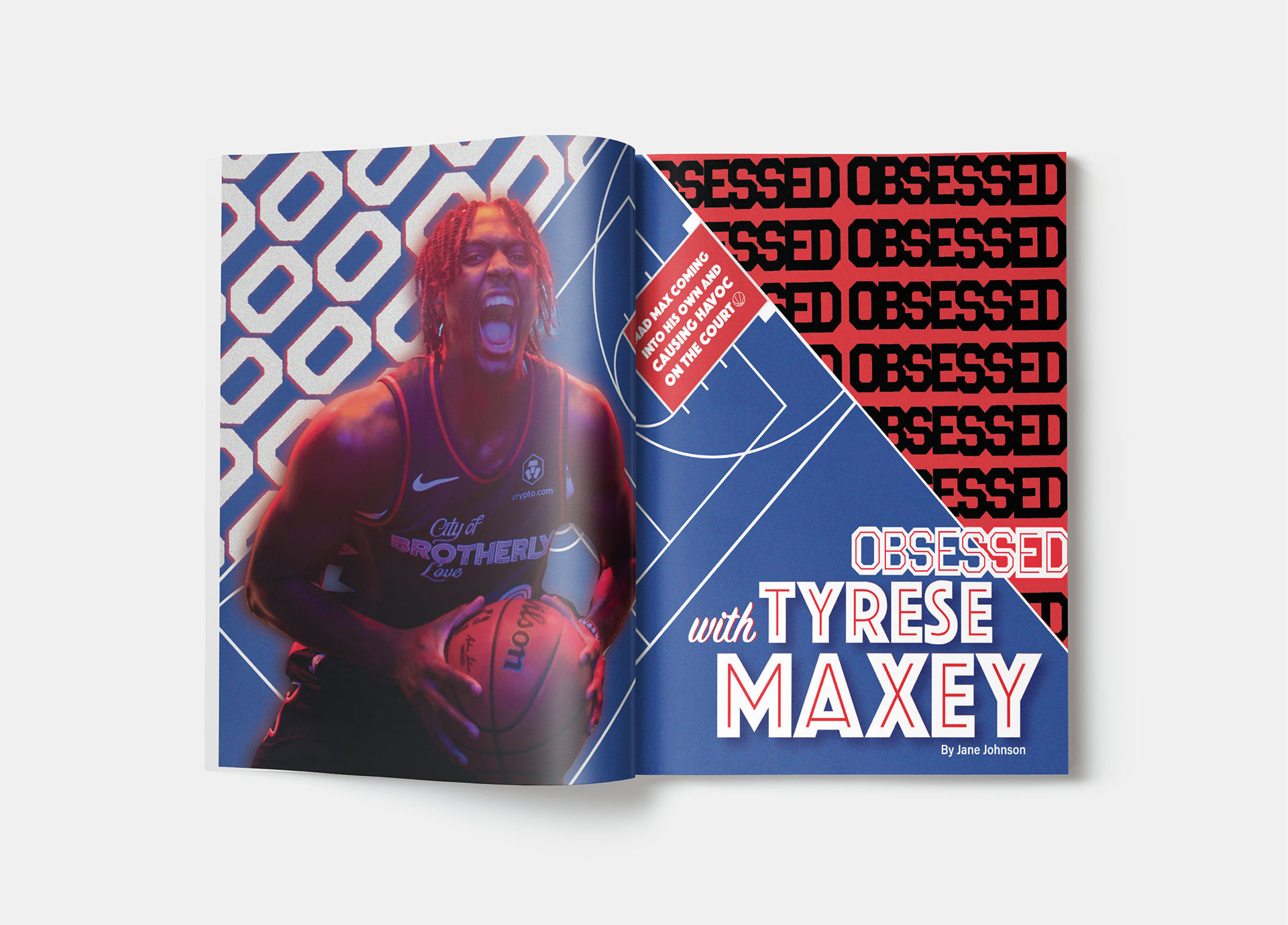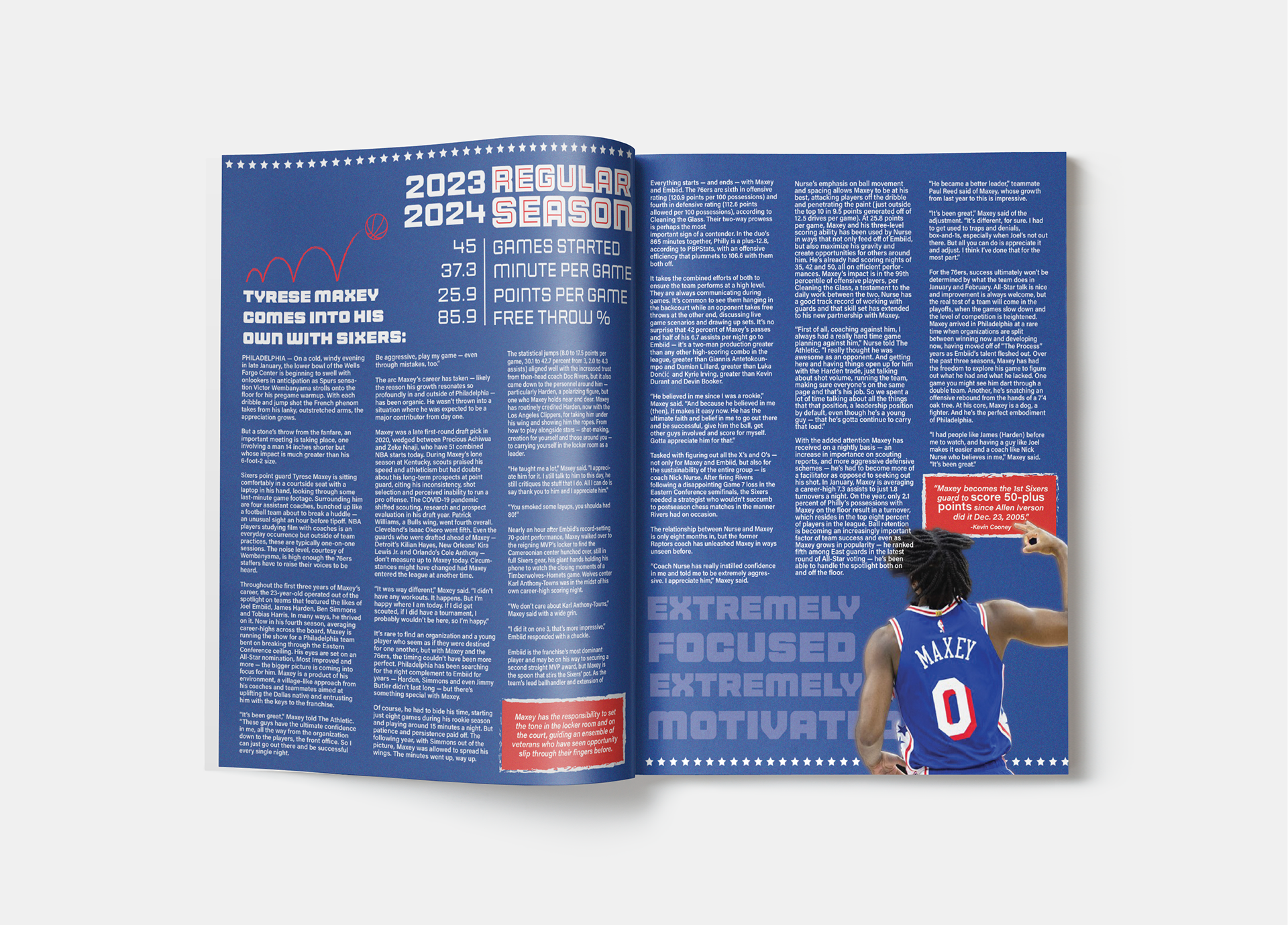 A two-page editorial highlighting 76ers player, Tyrese Maxey
